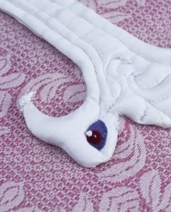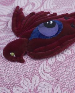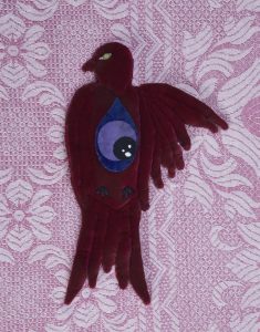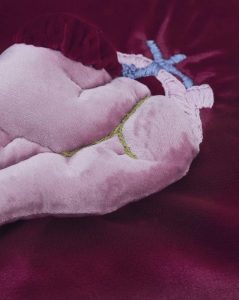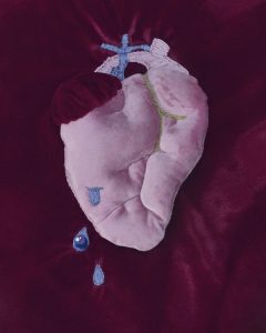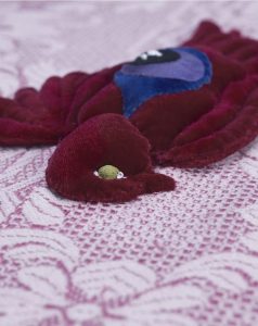 For My Heart & Eyes - 2022 For My Heart & Eyes A flightless wing, an all-seeing petal, blood filled tears & a forever bleeding heart. For all of the endless deaths, lived over and over. Fucking imperfect little stitches. Perfectly painful. For the bird, the heart & the flower…“We are images, dreams, photographs. We must not stay here.”The AlchemistThe Holy Mountain – JodorowskyFor the idle hands in-between. Silly stitches and vintage textiles. Textile sculpture: Cotton thread, glue, velvet, vintage textiles.