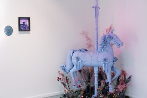 The surface of my main images, stand as portals… Portals to a world, seemingly nonsensical, overtly pretty and opposingly maximalist… Seeking to claim space for the other… These spaces are inviting you to come and play, they exist for you to consider another way of being… Outside and inside of a paired back, neutral and minimalist existence… They are offering an alternative… And for me a release… A release of neuronormative, gender normative expectations… They are a challenge to accept and see the magic in seemingly disparate ways of being… In life and in art.